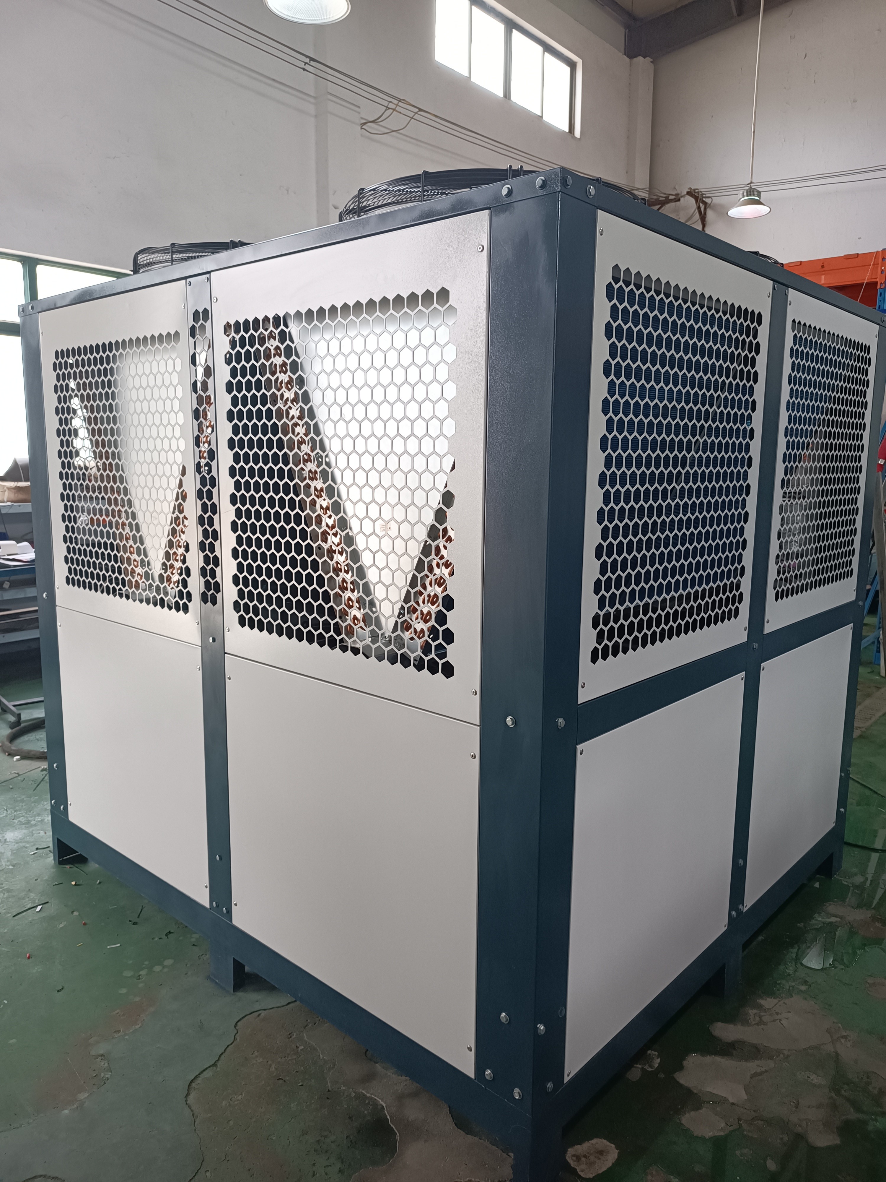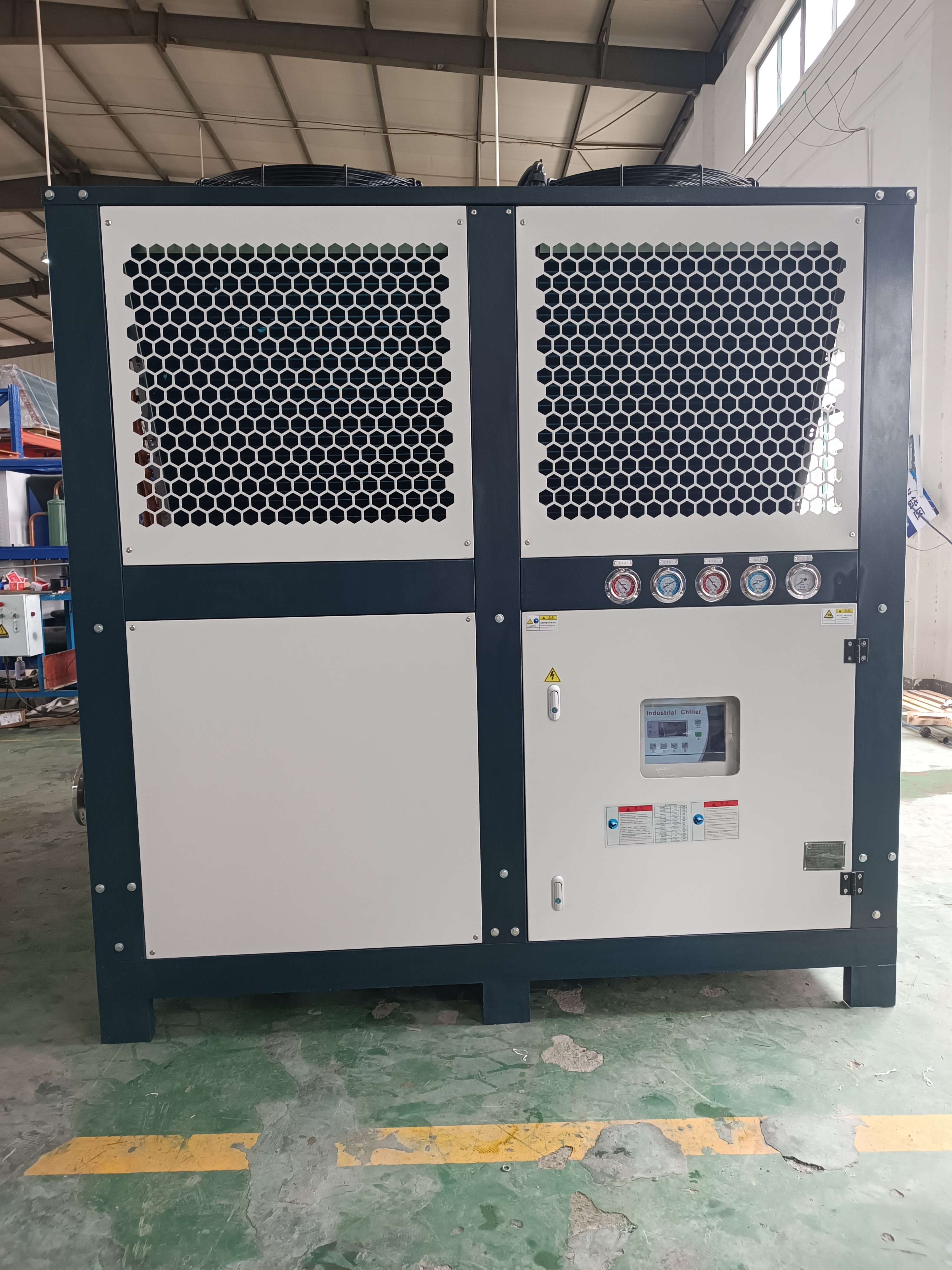 60匹风冷式冷水机是一种广泛应用于工业制冷领域的设备,它可以提供低温冷冻水,用于冷却和降温设备。这种冷水机通常采用风冷式制冷技术,因此被称为风冷式冷水机。
