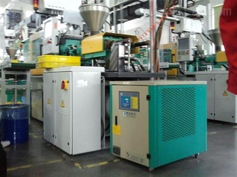 一副模具在没有使用之前,其成型周期20秒,其中大部分时间用于冷却,约占整个成型周期的80%,在使用注塑机冷水机之后,能的缩短冷却时间,那么整个成型周期得到缩短,可以降至16秒.简单算一笔账,整个成型周期缩短20%,产能得到的提高,得到的效益远远高于购买的先期投入.注塑模温机的作用就是用来冷却模具并保持它的工作温度,注塑件品质稳定和加工时间.在注塑工业中,模具的温度对注塑件的质量和注塑时间有着决定性的作用.在的选择过程中,主要从需根据注塑机的锁模力,注射量的大小进行选择,不同吨位的注塑机搭配不同功率的.内部结构及冷却方式等几个方面综合考虑.