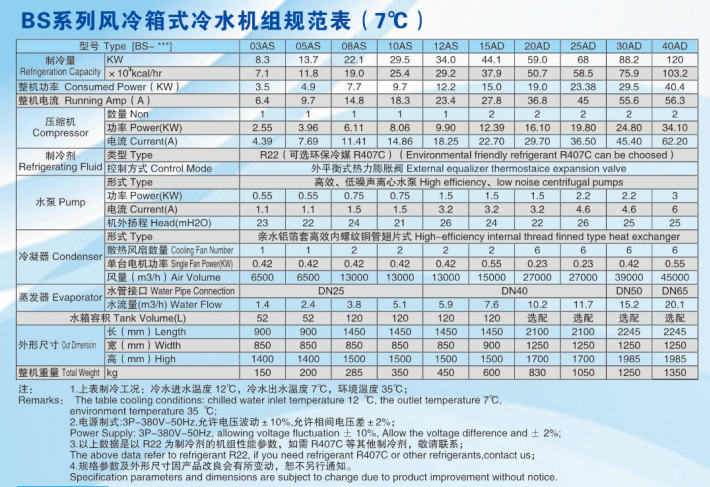 设计简便、配件量少,制冷工况范围广。独立工作回路,。运行时可以根据负荷量调节负荷大小,部份负荷运行时效率更高。连续式容量控制,提高机组的能效比,降低运行费用。内设初效过滤器,换热器换热效果并延长换热器使用。微电脑控制系统,操作方便,保护功能齐全,显示界面友好,全中文显示,故障率低。水泵采用国内不锈钢水泵:噪声低、扬程高、流量大、体积小。压缩机采用松下、大金、谷轮、丹弗斯等压缩机,*制冷制冷效率高,性能稳定低噪音。运行平稳,故障率低,使用长,整机结构紧凑,易于安装维护操作简单。膨胀阀、电磁阀、过滤器等制冷原件采用爱默生、丹弗斯、卡仕妥等世界。交流接触器、热继电器等主要电器组件均采用施耐德,的提高了机组的使用性能。冷凝器、蒸发器采用换热铜管,提高了机组整体的热交换能力,zui大的发挥了机组制冷效能。