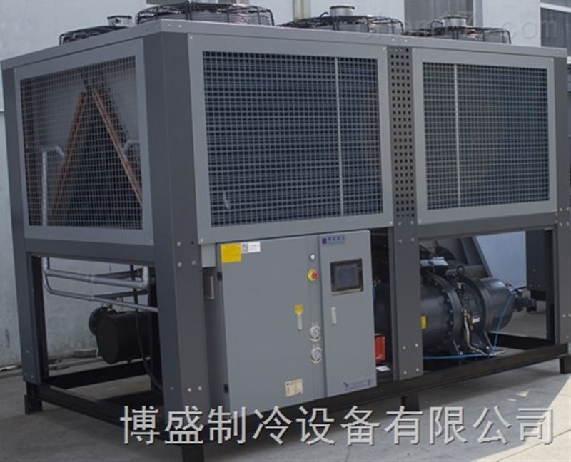 以采用螺杆式压缩机而命名的,冷媒在蒸发器内与载冷剂充分换热并气化后,经压缩机进行绝热压缩,变成高温高压状态。被压缩后的气体冷媒进入冷凝器中,经冷凝放热后变为液态冷媒,液态冷媒经节流阀膨胀并吸热变成气液混合物。