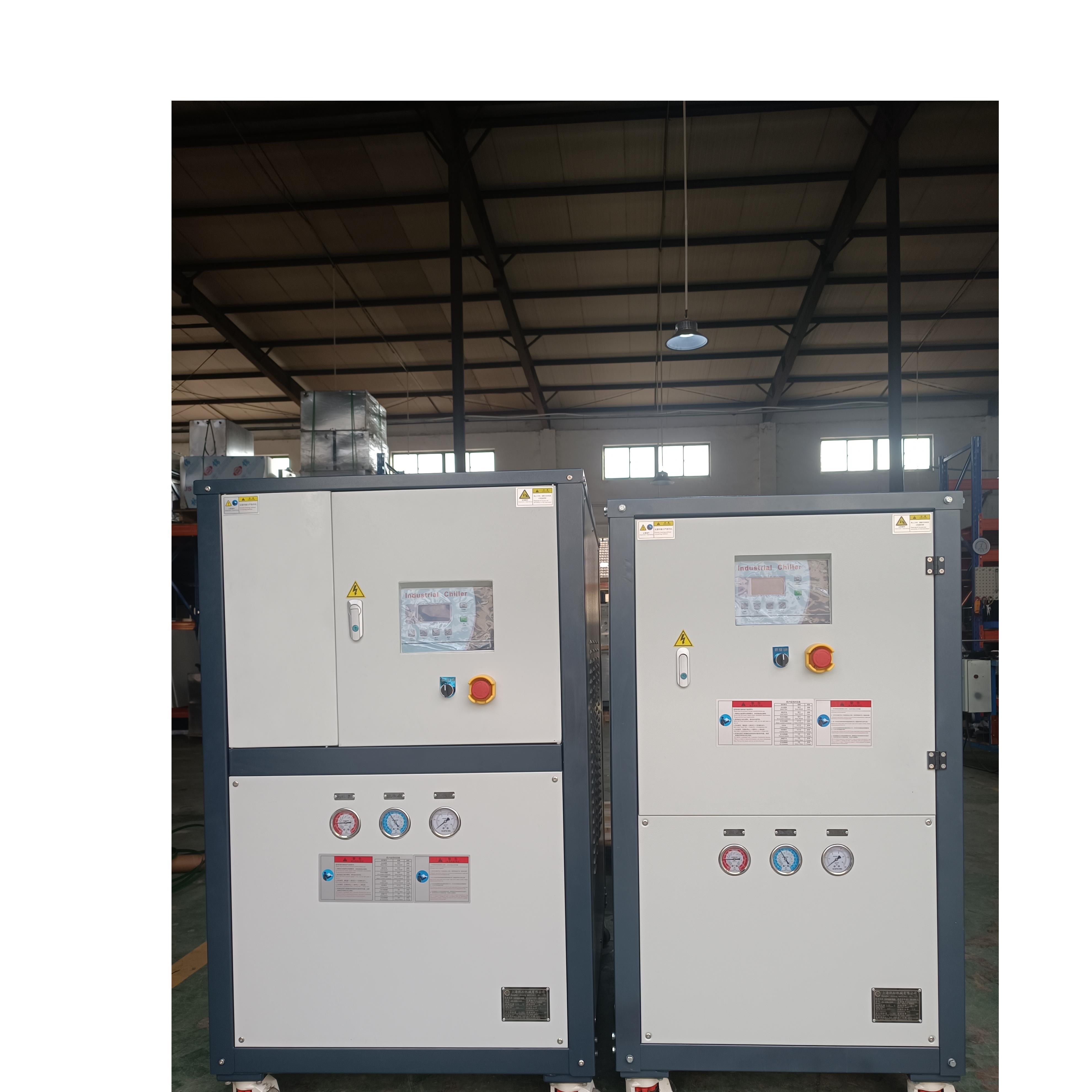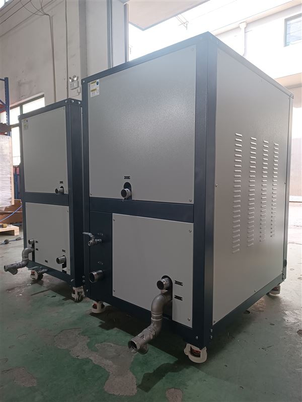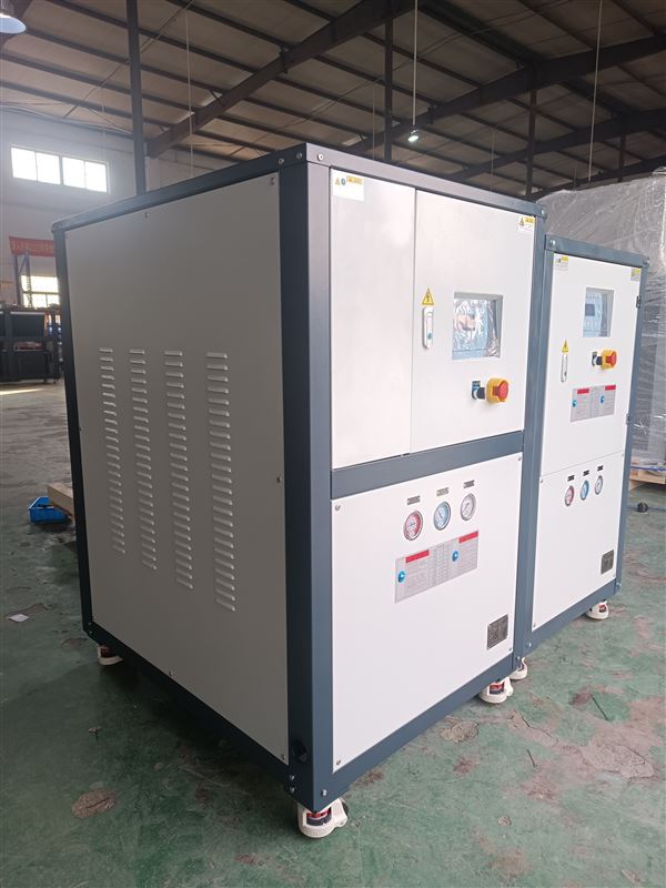 对于实验用的高低温一体机系统,它由一台压缩机制冷机组、储冷水箱、泵组、传感器、控制装置及辅助装置组成。这种系统的制冷压缩机组由低温制冷压缩机、蒸发器、冷凝器及相应辅件组成的制冷系统,整机是15kw恒定冷源,并由水箱内的温度传感器感知水箱内的温度变化,上传到温度控制器中,由温度控制器控制通过调整压缩机的输出功率,使水箱的温度始终控制在较低的温度范围。