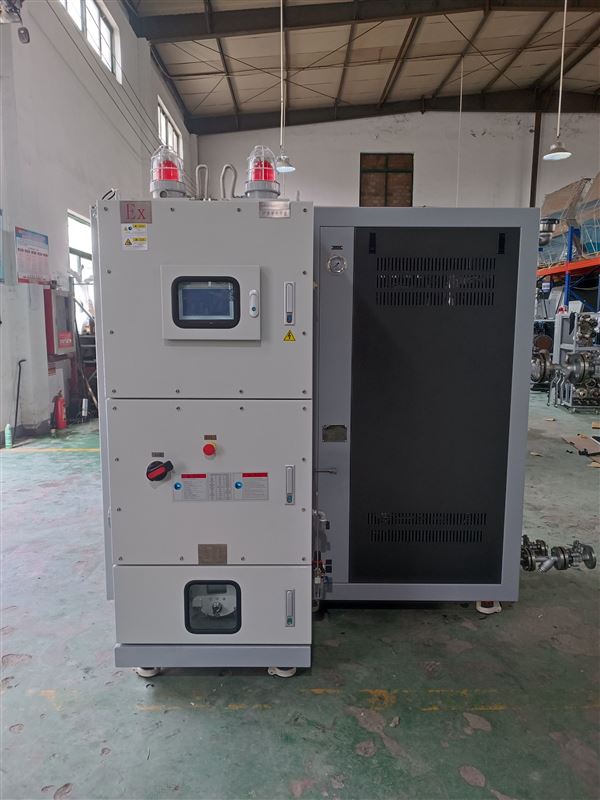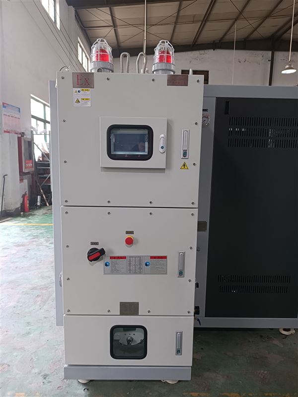 高温防爆模温机是一种特殊的模温机,主要用于工作环境具有高温和爆炸危险的行业,如石油、化工、矿山、船舶、冶金、烟草等。这种设备具有防爆、防火、高温、高压等特点,能够满足这些行业对于设备安全性和稳定性的高要求。 高温防爆模温机的防爆性能符合国际标准,包括防爆等级、防护等级等指标。防爆等级一般为Exd IIB T4,防护等级可达到IP54或以上,具有良好的防爆防护